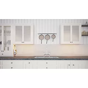 Manufactured from high-gloss 4mm acrylic. Lightweight, but durable. Can be cut to the required shape using standard wood working tools and fitted using a neutral clear silicone. Modern design with the appearance of glass. Hygienic, easy to clean, and with high resistance to mould build-up. Suitable for bathroom or kitchen.
