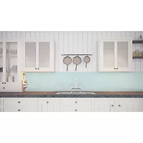 Manufactured from high-gloss 4mm acrylic. Lightweight, but durable. Can be cut to the required shape using standard wood working tools and fitted using a neutral clear silicone. Modern design with the appearance of glass. Hygienic, easy to clean, and with high resistance to mould build-up. Suitable for bathroom or kitchen.