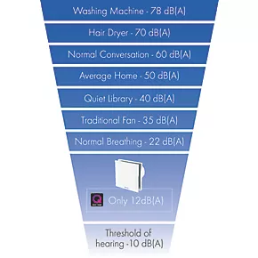Extremely quiet continuous running bathroom fan with high efficiency motor. Provides stylish and silent ventilation without compromising on performance.